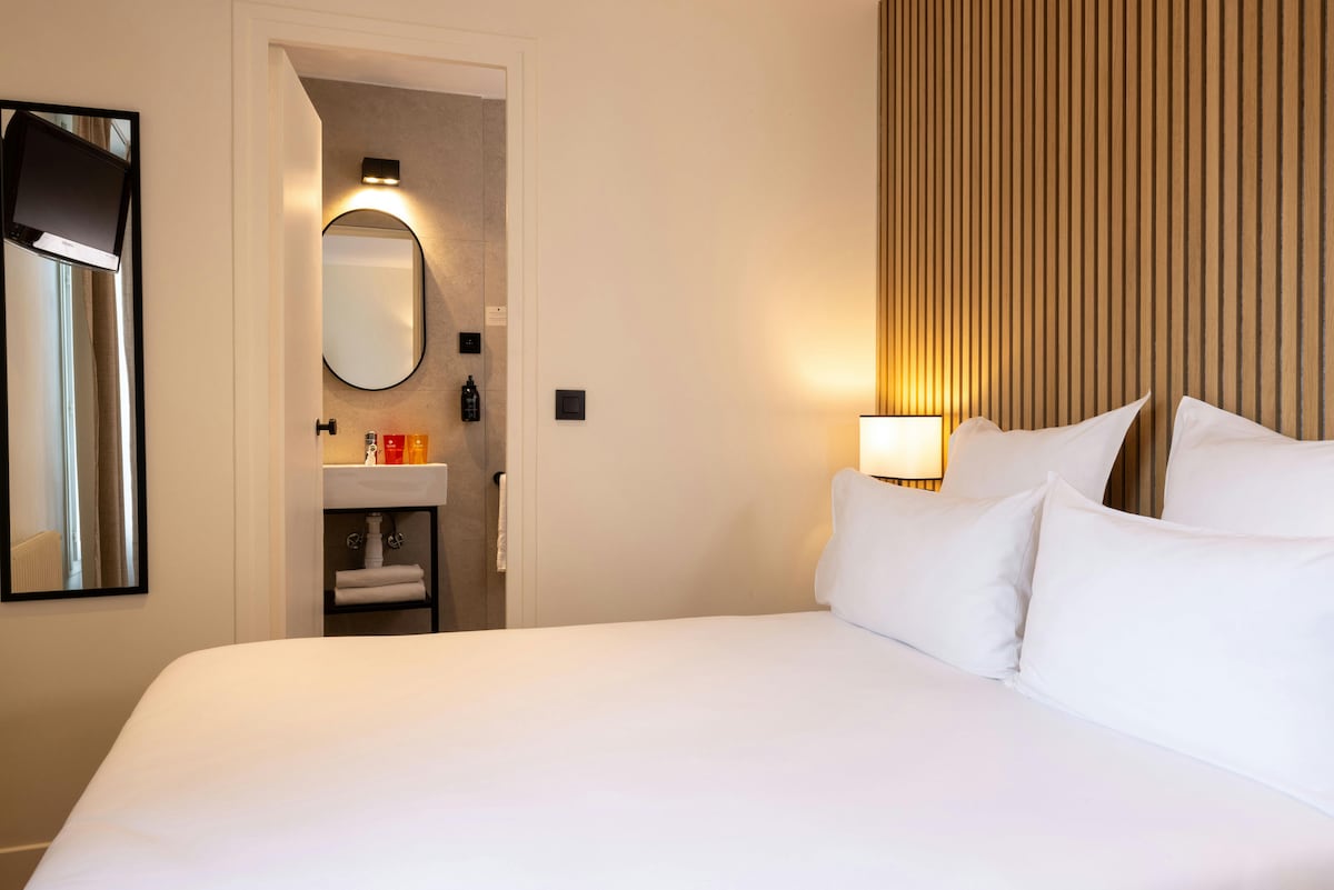 Bienvenue dans votre chambre, pensée pour allier confort, élégance et fonctionnalité au cœur de Paris. Située au sein d’un hôtel design entièrement rénové. La décoration sobre et contemporaine, fidèle à l’univers de l’hôtel, crée une atmosphère apaisante et chaleureuse, parfaite pour un séjour parisien réussi.