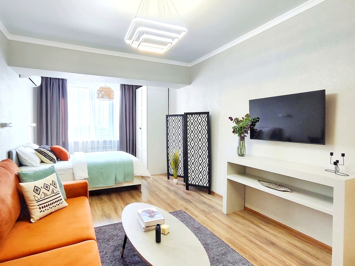 ¡Bienvenido al corazón de Almaty! Ya sea que estés aquí por negocios o por placer, nuestro objetivo es que tu estancia sea cómoda. Tu apartamento estará ubicado en un edificio tranquilo y moderno con todo lo necesario para una estancia corta. Situado justo en el bullicioso centro de la ciudad, estarás a poca distancia a pie de los mejores restaurantes, cafeterías y atracciones culturales de Almaty. Damos prioridad a la limpieza y cumplimos con estrictas normas de higiene. ¡Reserva tu estancia hoy mismo!