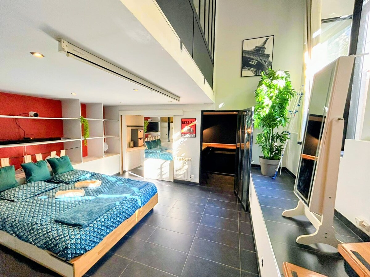 Loft espacioso, elegante e idealmente situado en el centro de la ciudad, justo en el centro del dinámico barrio de la Guillotière. Perfecto tanto para amigos como para familias, es el punto de partida ideal para visitar la ciudad o un lugar perfecto para trabajar y concentrarse. La amplia terraza con barbacoa promete noches deliciosas. La decoración cuidada y las numerosas obras de arte terminarán por hacer que su estancia con nosotros sea inolvidable.
