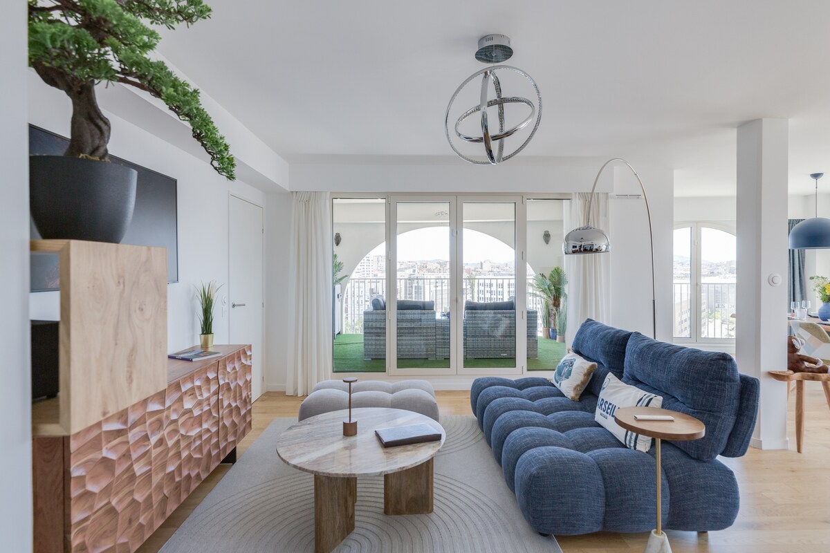 Este es un magnífico apartamento de arquitecto, luminoso y atípico. Con una ubicación ideal, se encuentra en la avenida del Prado a la salida del metro Perrier, entre el puerto viejo, las playas y el estadio velódromo. Este apartamento es un cruzado en el octavo piso de un edificio de los años 50. Con magníficas vistas a nuestra señora de la guardia, así como a la avenida del prado y sus colinas, cuenta con dos balcones amueblados. Apartamento de 55 m2 con todas las comodidades, aire acondicionado, cocina equipada, Netflix, ascensor.
