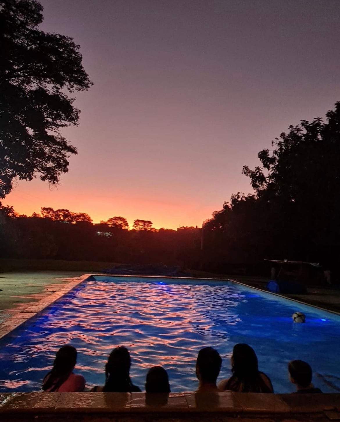 Imagine assistir ao pôr do sol dentro da piscina aquecida totalmente privativa, sentindo a tranquilidade da noite chegar. No Rancho Contêiner, entre Brasília e Goiânia, o espaço é alugado por completo, exclusivo para sua família ou amigos. São duas suítes climatizadas, área gourmet, fogueira, quadra de beach tênis e acesso ao lago e à cachoeira do condomínio. Um refúgio moderno, seguro e aconchegante para relaxar, celebrar e criar memórias. @rancho_conteiner