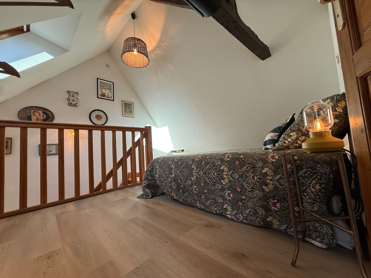 Este alojamiento único situado en el corazón de Vaugueux le seducirá... ¡Venga a disfrutar de los restaurantes de los alrededores y del ambiente de este barrio histórico! El centro de la ciudad y la universidad se encuentran a 5 minutos andando. El apartamento consta de una sala de estar y una cocina totalmente equipada. En la sala de estar, tendrá un sofá cama de 140/200 cm. También, en la planta baja, hay un baño y un aseo separado. Arriba hay un gran dormitorio con una cama de 140/200 cm.
