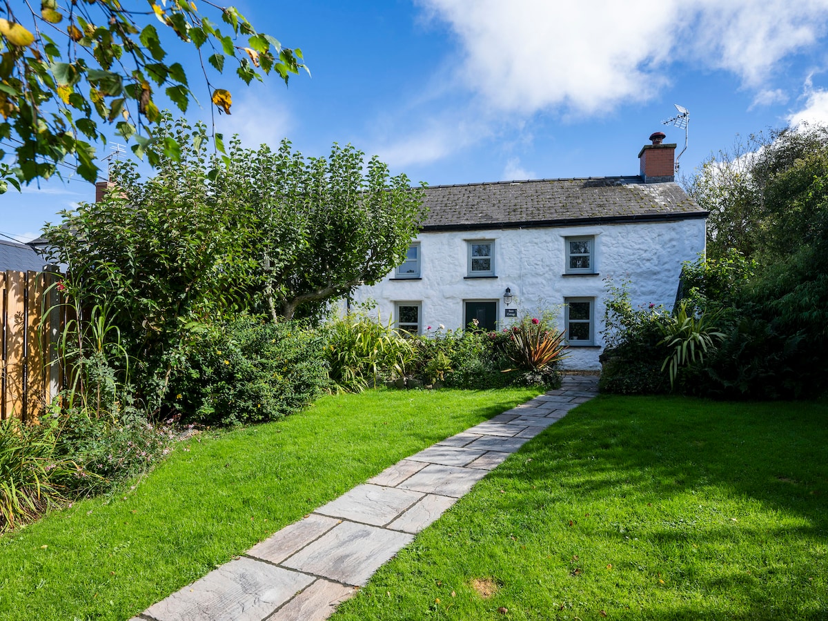 Romántica casa de campo de Pembrokeshire en un hermoso terreno de 3 acres con sauna, estanque natural (depende de la lluvia), sala de juegos y kayaks. Paseos por la colina en la puerta, impresionantes playas y paseos por los acantilados cercanos. Contempla las estrellas desde una cómoda cama tamaño king. Acurrúcate junto a una estufa de leña (madera gratuita). Amplio baño con bañera, ducha y calefacción por suelo radiante. Cocina bien equipada con cafetera. Zona de estar exterior cubierta con chimenea y barbacoa. Internet de fibra, TV inteligente (Netflix, etc.). Se admiten 2 perros que se porten bien.