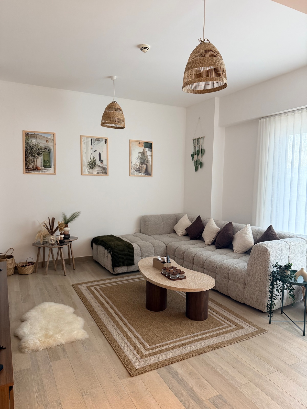 Apartamento de estilo bohemio con TV de 95 pulgadas en Yas Island
