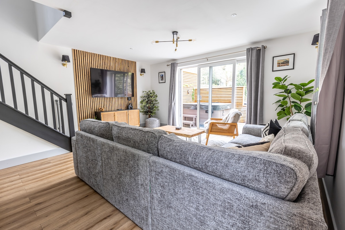 Relájate y desconecta en este alojamiento tranquilo y elegante. Disfruta de unas vacaciones relajantes con familiares o amigos en nuestra moderna y elegante casa con jacuzzi (se aplica un cargo adicional). Con una ubicación ideal, cerca del centro de la ciudad, la playa y las colinas. La ciudad de Barmouth tiene una variedad de tiendas independientes, restaurantes, pubs y cafeterías. La casa está situada en el extremo opuesto del puerto y rodeada de árboles y vistas a la montaña, un pequeño jardín con patio y zona de estar y plaza de aparcamiento para dos vehículos.