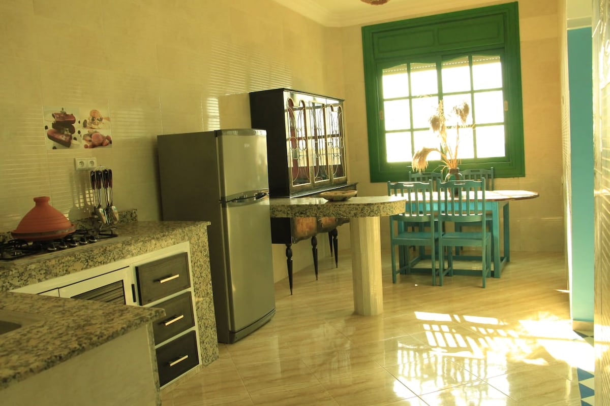 Bienvenido a tu pedacito de Marruecos auténtico, ¡donde el encanto tradicional se une al paraíso de los surfistas! 🏄♂️ Nuestra suite junto a la playa, con muy buenas valoraciones, ofrece la combinación perfecta de estilo local y comodidad moderna. 🏠 Tu espacio privado: • 2 dormitorios cómodos. • Salón tradicional marroquí con Smart TV. • Baño privado completo. • Wifi rápido (108 Mbps). Paraíso 🌅 compartido en la azotea: • Cocina totalmente equipada para uso de los huéspedes. • Impresionantes vistas al mar y a las montañas. • Asientos relajantes en la terraza. • Lugar perfecto para ver el atardecer.