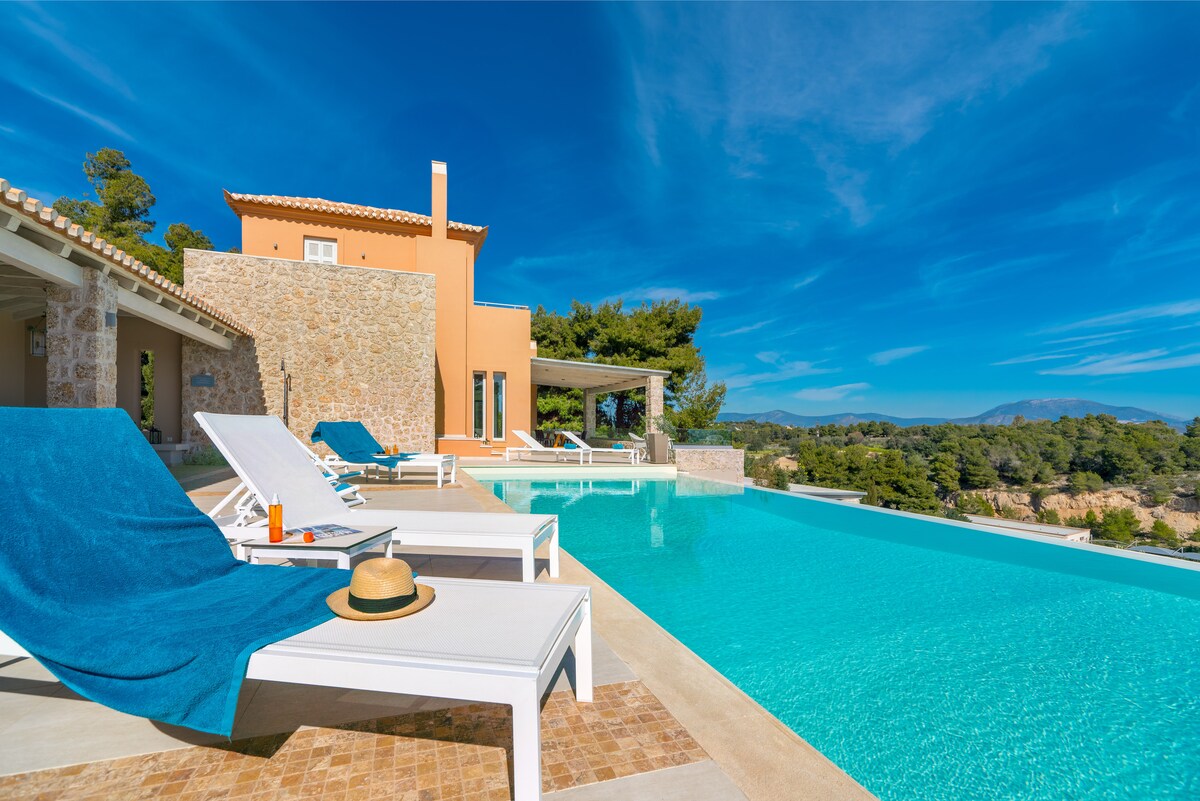 Float ✧ Dream ✧ Be In the footsteps of a Muse... Named after Thalia, the Muse of Comedy and Poetry this villa reflects pure Greek evzoía, a life in full bloom. On top of a hill, Floating Heaven gazes over the endless blue of the Argosaronic Gulf—a breathtaking natural panorama. In this blue-on-blue oasis the infinity pool merges with sea and sky; as you dive into the water, Hydra, Spetses, and Dokos feel close enough to touch.