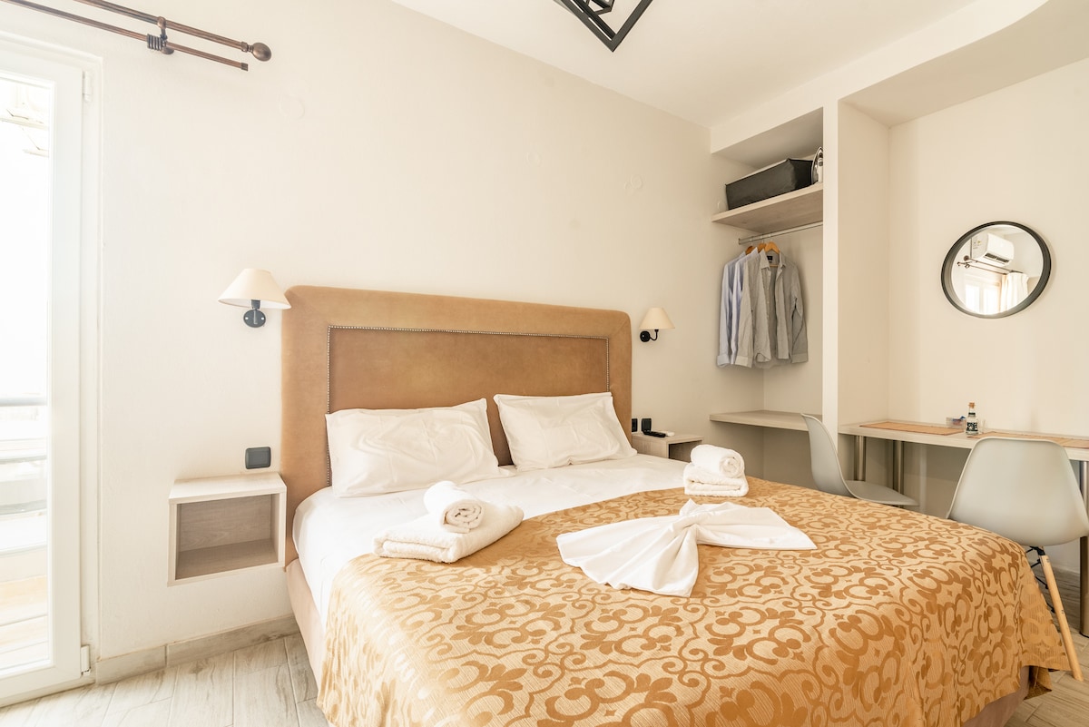 This completely restored studio is located on a quiet street, just a short walk (5 min) to the city’s main attractions:the closest beach, Ammoudi, which offers various watersports activities, the harbor, the bars, restaurants and shops, the weekly market offering fresh products. Situated on the ground floor. Wifi and a Netflix account are also available.