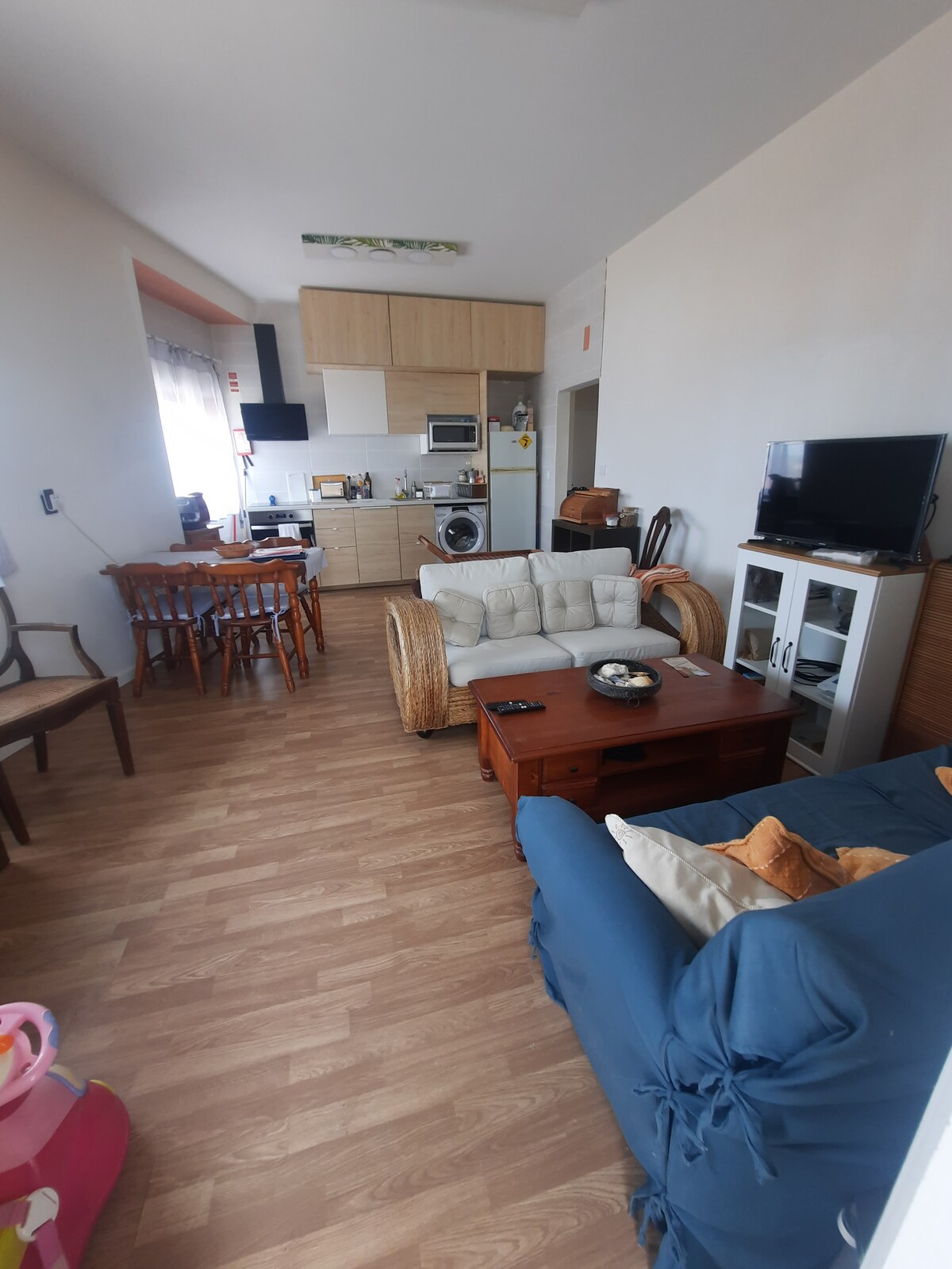 Apartamento en planta alta con vistas al mar, en primera línea de una playa con extensa zona de arena. Se encuentra en Aguçadoura, en el camino de Santiago y tiene una tienda de comestibles en la puerta, restaurante y parque infantil. Se encuentra en el tercer piso de un edificio sin ascensor, con escaleras estrechas, por lo que es menos accesible para personas con movilidad reducida. ¡La terraza es idílica para relajarse con privacidad al son de las olas del mar u observar el cielo poblado de gaviotas durante el día y estrellas por la noche y una magnífica puesta de sol!