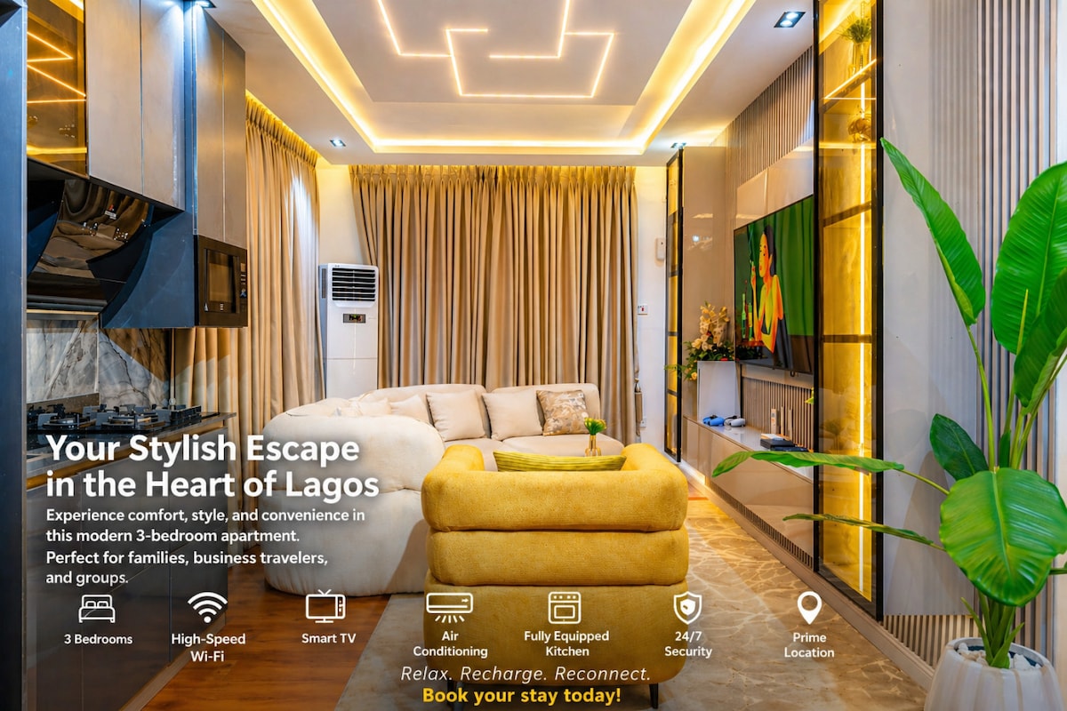 Lekki 3BR, energía y wifi 24/7 – Seguro y elegante