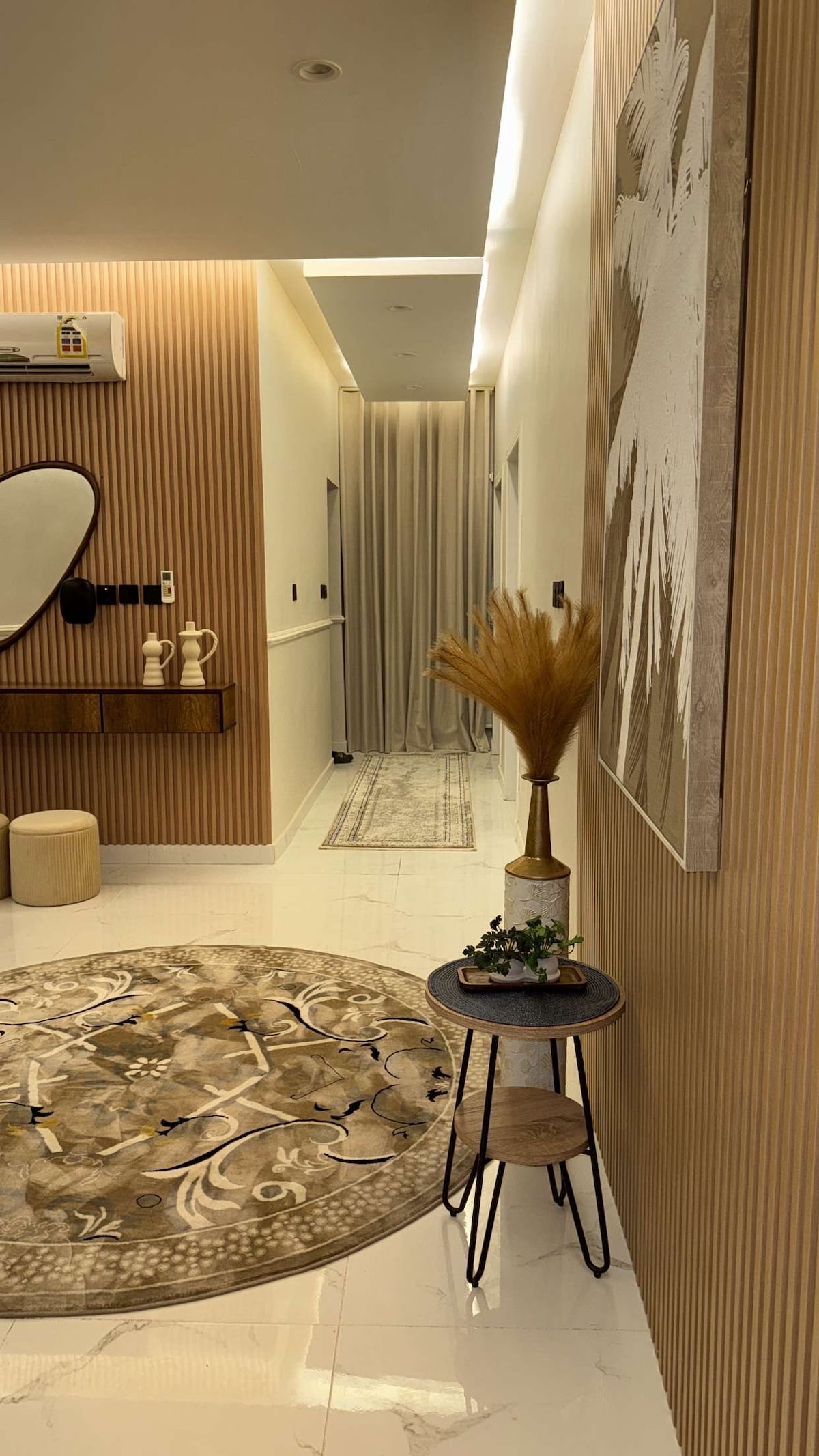 Estudio tranquilo y elegante con un toque diferente para proporcionar la máxima privacidad. Cama matrimonial con una sala de estar tranquila y cómoda. Cuenta con una sencilla zona de café, máquinas de café, un baño con todos sus accesorios y un calentador de agua (cepillo de dientes, pasta de dientes, champú, Jabón, toallas de un solo uso, zapatillas) Se caracteriza por su ubicación detrás de la carretera del rey Abdullah, que incluye muchos restaurantes y cafés y está cerca del parque del rey Abdullah y el centro comercial Al-Ahsa. Entrada inteligente Televisión e Internet y hay plazas de aparcamiento