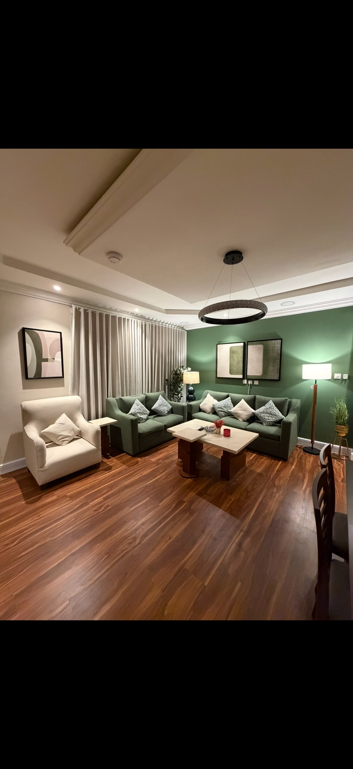 Apartamento para una habitación, un salón, un consejo al aire libre, una cocina independiente, un monstruo privado y una entrada privada al apartamento amueblado con muebles nuevos y lujosos cerca de la escuela primaria está a un minuto y junto al mercado comercial está a un minuto, el barrio está lleno de servicios y es muy adecuado. Disfruta de toda la familia en este elegante lugar.
