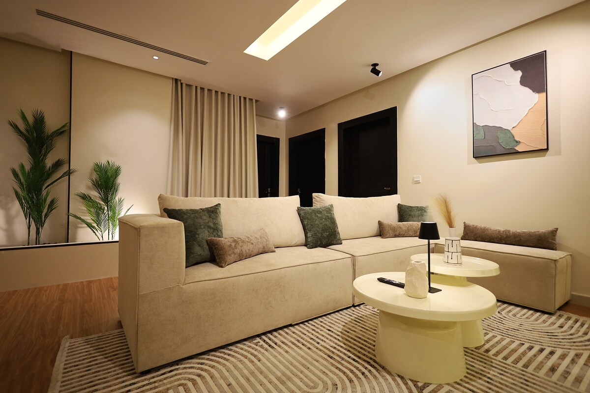 Bienvenido a nuestro apartamento, que le ofrece una estancia excepcional que supera sus expectativas. El apartamento tiene un dormitorio equipado con los mejores colchones, además de un salón separado con cómodos sofás y una pantalla inteligente de 65 pulgadas para disfrutar (Netflix, Shahid, BeIN) + wifi. La cocina está totalmente equipada para satisfacer todas tus necesidades. Hay una zona exterior con un diseño rústico y una vista privilegiada del centro financiero, ideal para celebrar eventos y reuniones con familiares y amigos. El apartamento está equipado para estancias cortas y largas. La ubicación es fantástica, en el corazón de la ciudad, cerca de lugares de interés, servicios y restaurantes.
