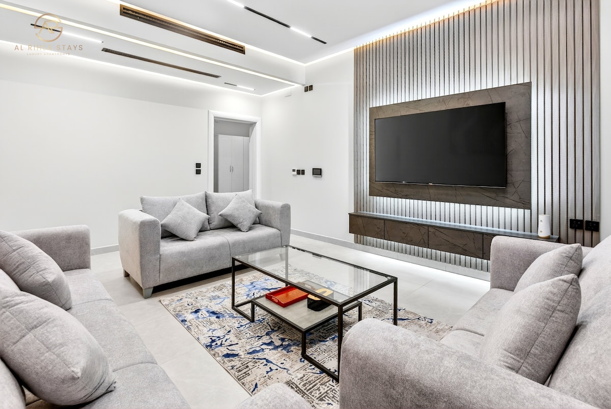 A luxurious one-bedroom apartment featuring a room and a bathroom, with a calm, hotel-style design for maximum comfort. It includes high-speed internet, a 55-inch smart TV, a refrigerator, microwave, and kettle. A high-quality mattress topper is also provided to ensure a comfortable sleep. The property enjoys a prime location close to all amenities and near a large mosque.