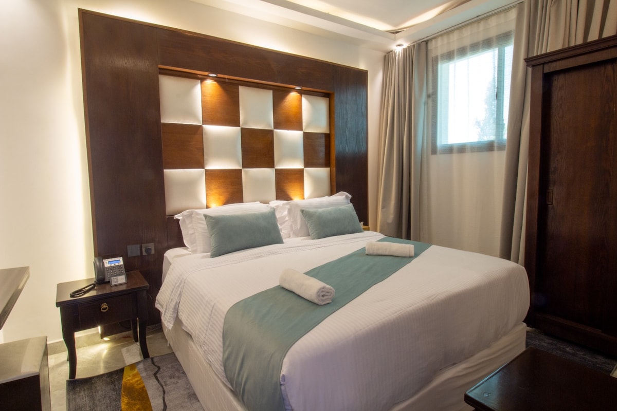 جناح بغرفة نوم وصالة ونوافذ واسعة