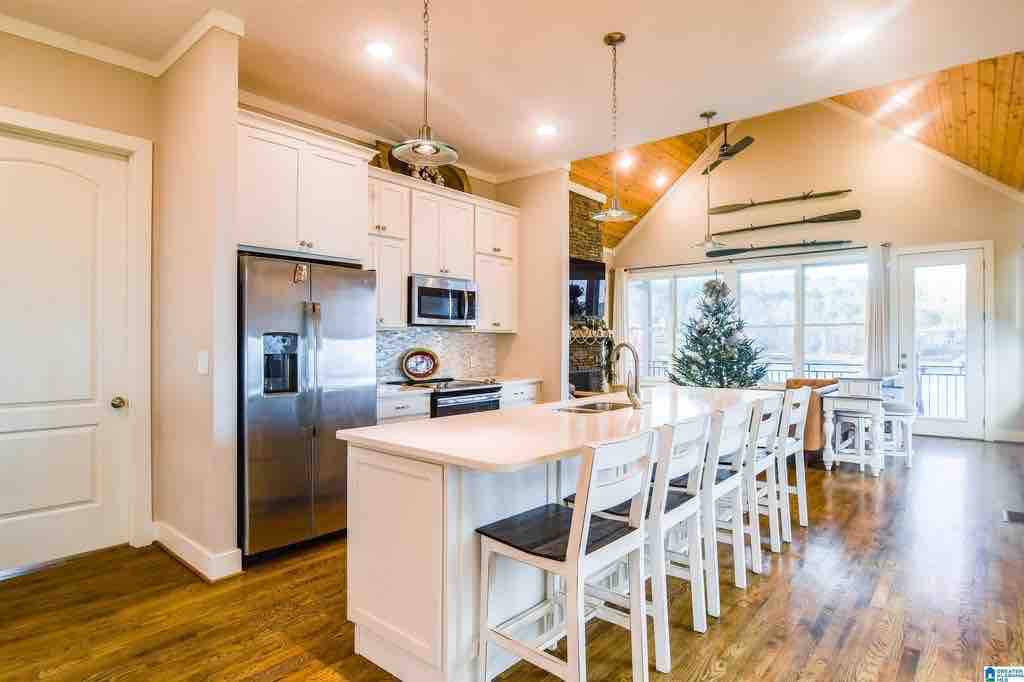 Impresionantes vistas ininterrumpidas de 180 grados en esta propiedad frente al mar con aguas profundas durante todo el año. ¡Despierta para ver el lago desde todas las habitaciones! Situado a pocos minutos de la I-65, en Cullman, para facilitar el acceso. Espacio de entretenimiento ideal con 2,800 pies cuadrados en el interior, patio exterior cubierto, gran terraza compuesta sobre el agua, embarcadero privado para barcos/muelles para nadar, 2 piscinas comunitarias, cancha comunitaria de baloncesto y pickleball e internet de fibra de alta velocidad.