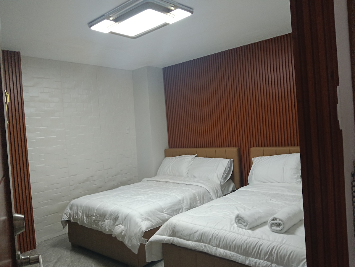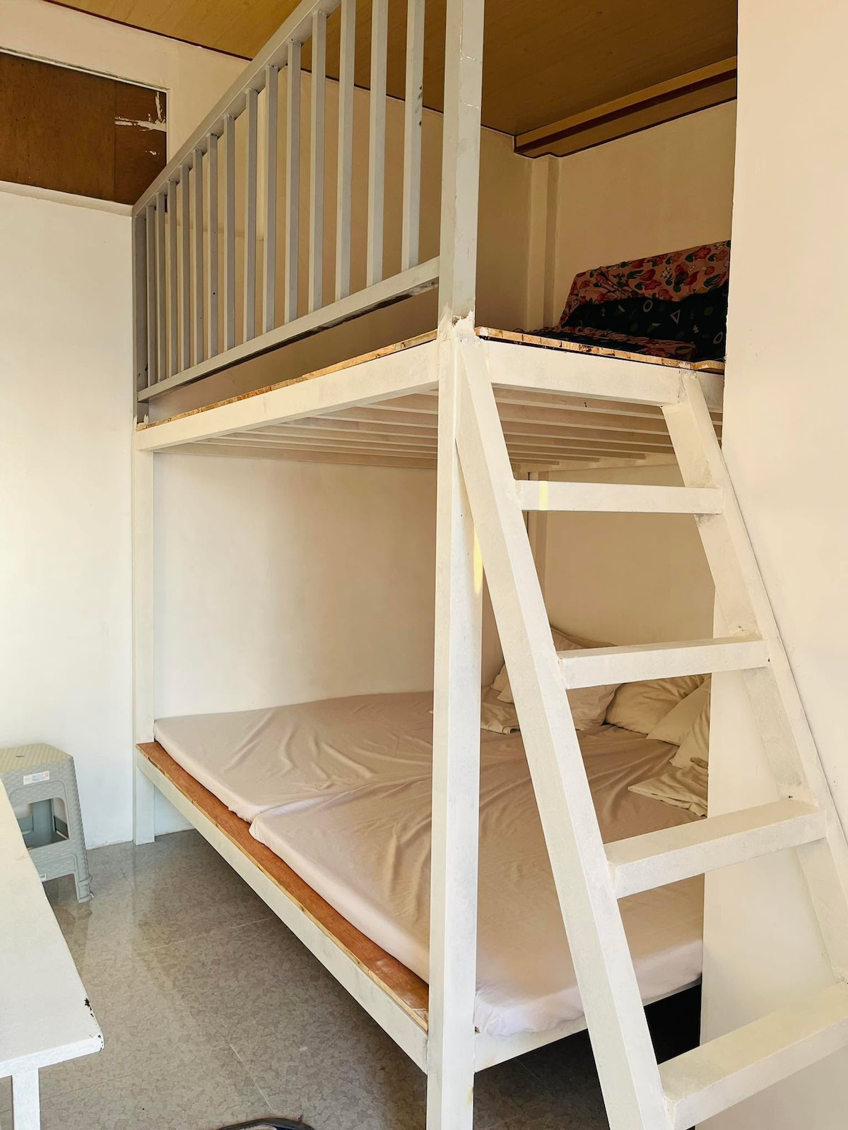 Detalles de la habitación 5 – Estancia para 4-6 huéspedes ✓ 2 camas tamaño queen (ropa de cama, almohadas y colchón adicional incluidos) ✓ Con baño privado y terraza ✓ Con aire acondicionado y ventilador de pared Acceso ✓ compartido a la cocina (con utensilios) ✓ Con acceso gratuito a la piscina ✓ Admite mascotas ✓ WiFi gratuito y seguridad CCTV ✓ Estacionamiento cerrado y respaldo del generador en caso de interrupción de energía o baja tensión A ⚠️ 3 minutos a pie de la playa (no frente a la playa). ⚠️ No se proporcionan artículos de tocador ni toallas de baño.