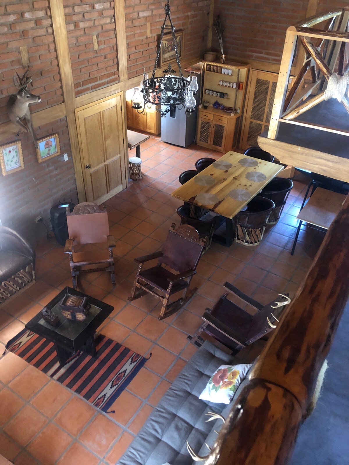 Casa estilo cabaña, amplia, cómoda, campirana, con vista a la sierra de Alamos, junto al mirador.