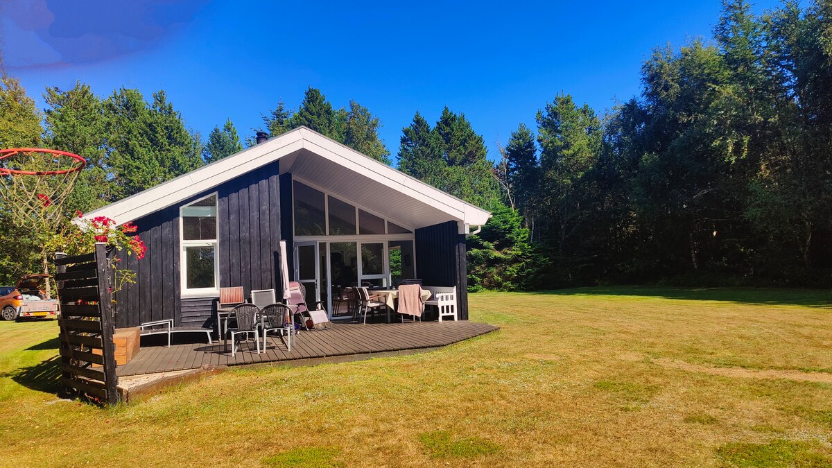 En una con la naturaleza, acogedora casa de verano grande recientemente renovada en una zona tranquila. ¿Te gusta la playa, el bosque, la vida del centro vacacional, el MTB, el golf, el pádel, Fårup Sommerland o simplemente a un viaje de todo? Aquí tienes algo para todos los gustos. La casa se mantiene en su estilo original con espacio y aire para vacaciones con hasta 2 familias (9 huéspedes). Sea cual sea el clima, se puede disfrutar de la ducha al aire libre, el jacuzzi, la bañera de agua fría y la sauna. La casa, el anexo y la cochera crean refugio, y están conectados por una terraza de madera y un pequeño césped con la posibilidad de varias actividades al aire libre.