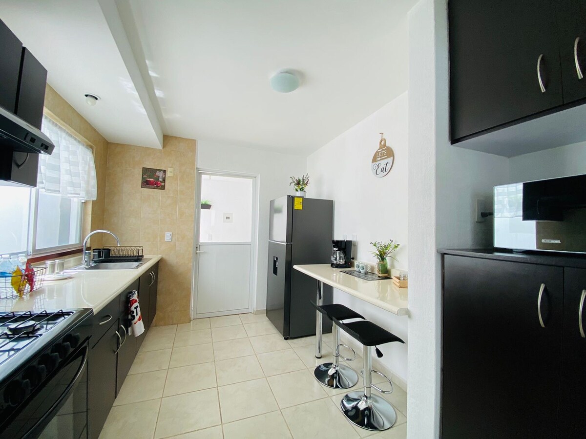 Un departamento residencial con mucho estilo ideal para disfrutar con tu familia, dentro de un exclusivo residencial con alberca. ••SI FACTURAMOS•• Cuenta con áreas comunes como alberca,dog park, ajedrez gigante, canchas de fut bol, juegos infantiles, etc. IMPORTANTE: Para el uso de alberca se debe solicitar las pulseras antes del inicio de la reservación. NO ofrecemos el servicio de aire acondicionado, lavadora o secadora.