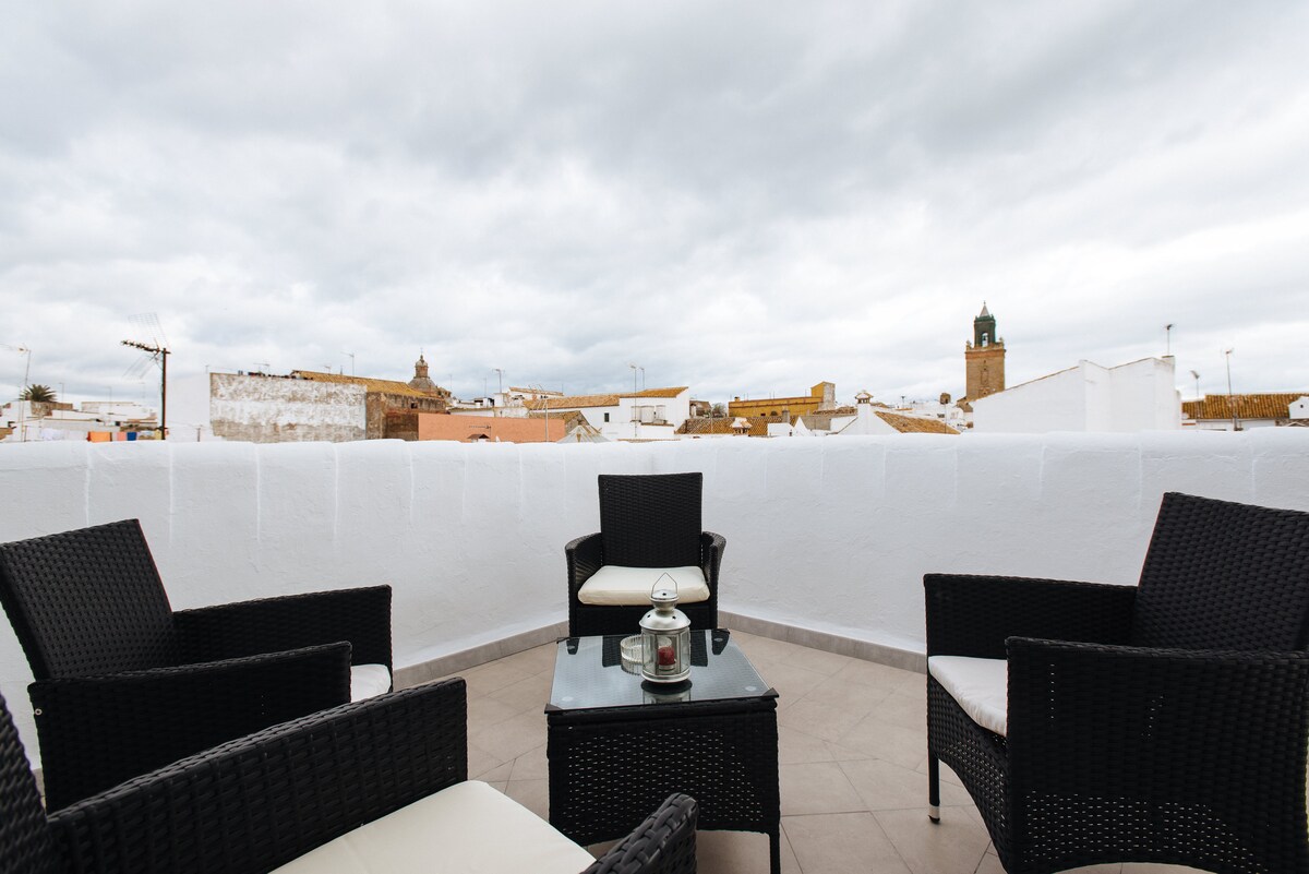 Increíble ático con ascensor para un máximo de 3 personas, con 2 terrazas privadas de uso exclusivo para este Apartamento, la terraza más alta con vistas panorámicas a toda la ciudad, se divisan más de 15 torres históricas del centro histórico incluyendo la Giralda de la Catedral de Sevilla a lo lejos. Es muy exclusivo y original y ha sido conceptualizado con un estilo moderno pero sin perder la esencia de antaño, y dotado con todas las comodidades y detalles para los huéspedes.