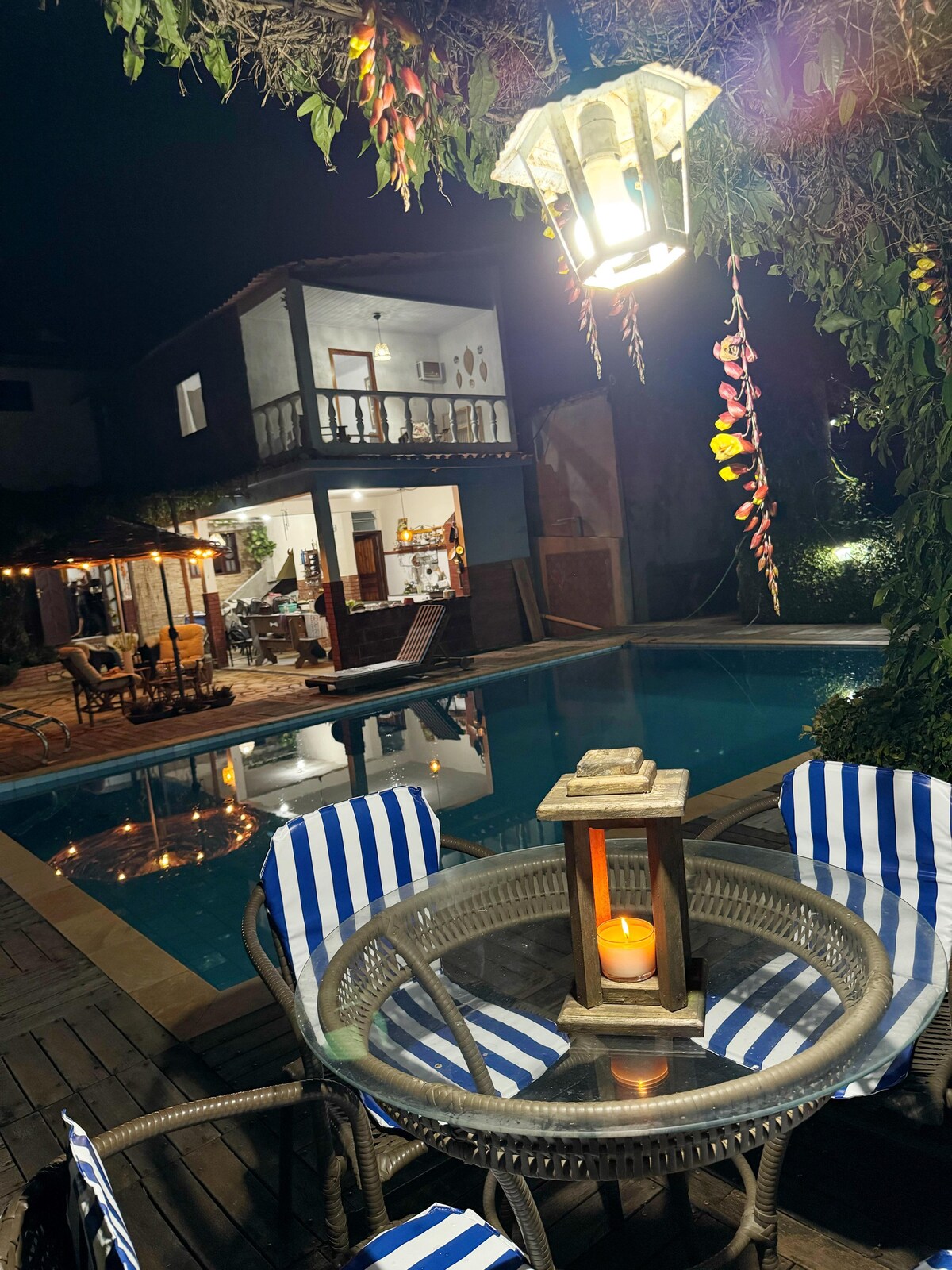Casa ampla e muito bem equipada, ideal para famílias. Apesar de estar dentro da cidade, oferece ambiente silencioso, seguro e cercado por natureza, a 3–5 minutos a pé do centro histórico. Possui 1 suíte, 1 banheiro social e 1 lavabo. Conta com piscina privativa de 40 m² com sol quase todo o dia, deck com espreguiçadeiras, churrasqueira, chuveiro externo e área de lazer com mesa para 10 pessoas e café da manhã sob uma jabuticabeira.