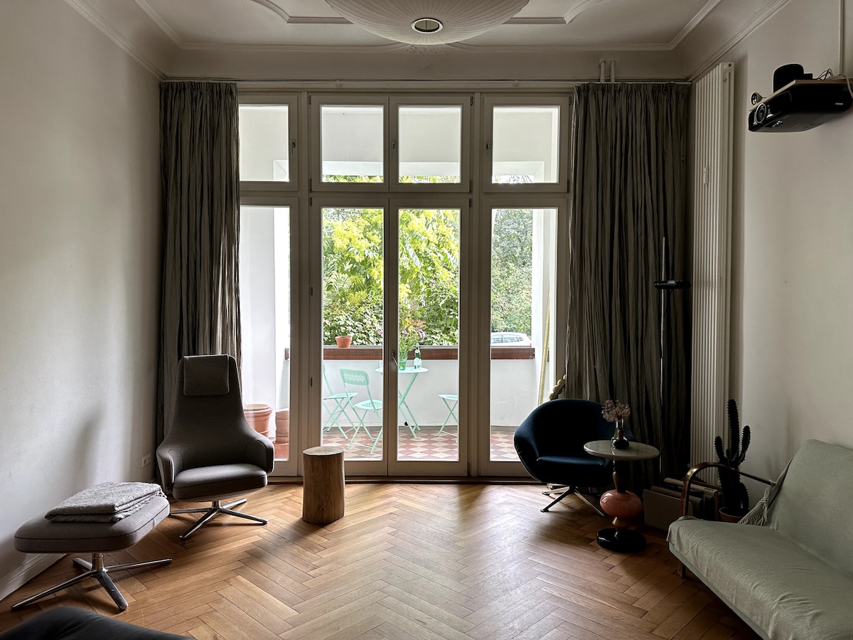 Elegante apartamento en antiguo edificio histórico (1872), balcón con vistas a Teutoburger Platz, renovado en 2014: más de 90 metros cuadrados de lujo, balcón único, cocina de diseño, salón soleado, baño moderno con bañera, ascensor, vistas maravillosas, corazón de Prenzlauer Berg (metro: 2 minutos, Alex: 10 minutos), barrio superior con galerías, bares y cafeterías, con licencia oficial para AirBnB.