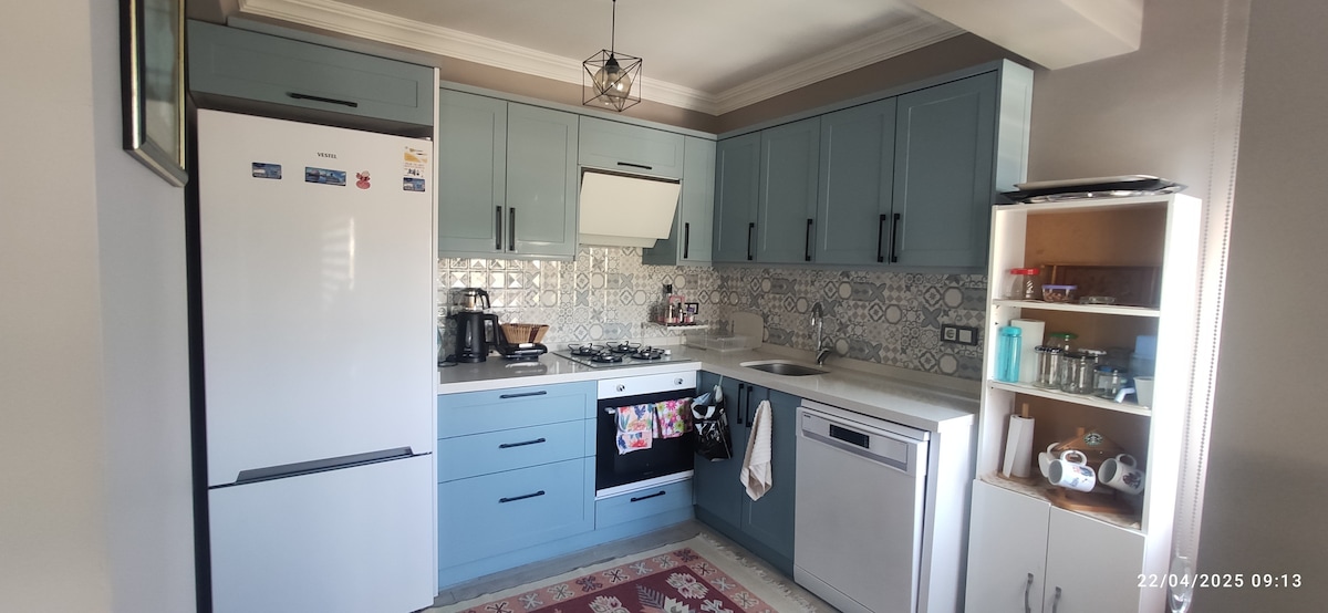 Es la planta baja de la casa de verano de 4 plantas con entrada independiente. En invierno puedes disfrutar de tus vacaciones con el sistema de calefacción. Hay 3 bahías a 2 minutos de la casa de verano, pero como está en la ladera, se requiere un coche para ir al mar. Es especialmente ideal para unas vacaciones tranquilas. Nuestra casa de verano está a 10 minutos del centro de Çandarlı en coche. Por la noche, puedes pasar una velada agradable yendo a los cafés o bares de la playa en el centro de Çandarlı.