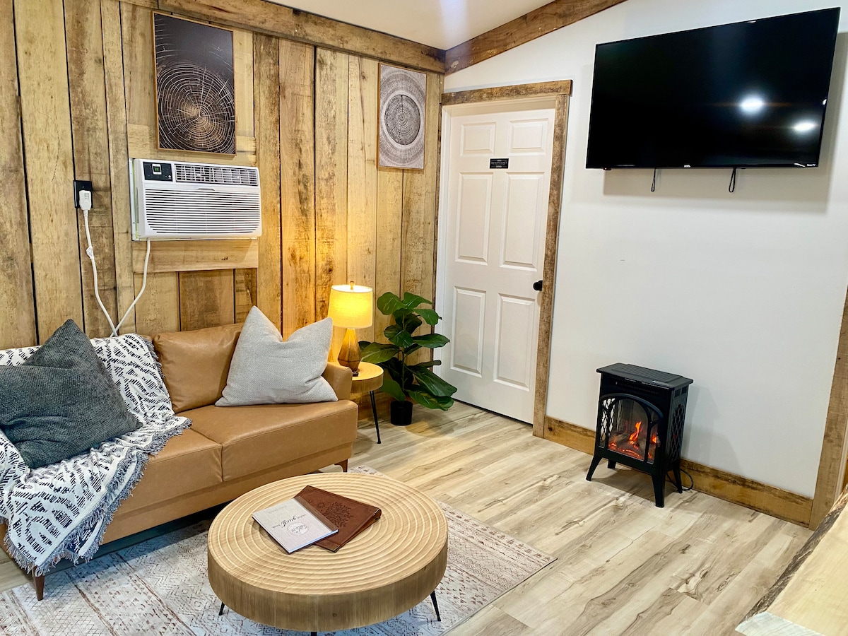 ¡Sin tarifas de limpieza! ¡Es como un cuento de hadas! Este granero construido por los Amish ha sido bellamente acabado para ser el lugar perfecto para relajarse en su viaje. El gran patio privado cuenta con una bañera de hidromasaje, parrilla de propano, mesa de picnic y anillo de fuego. En el interior encontrarás varias chimeneas eléctricas fáciles de usar, televisión inteligente, wifi de alta velocidad, un espacio de trabajo dedicado, una cafetería y una cocina completamente surtida, todo magníficamente decorado. Capacidad para 2 personas. Se admiten mascotas.