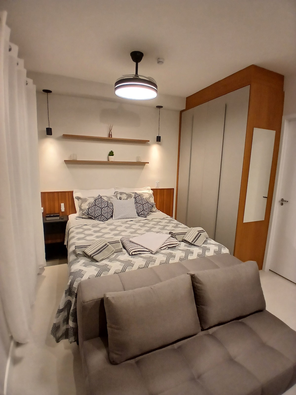 Apartamento nuevo, de estilo contemporáneo, de alto nivel y muy bien ubicado, con una vista privilegiada a Allianz Parque. Junto a centros comerciales, varios negocios, medios de transporte, parques, atracciones turísticas y edificios de negocios. El estudio está completo, con una cómoda cama queen, TV inteligente e Internet. Cocina con todos los utensilios, encimera, nevera y microondas. Con aparcamiento (rotatorio). Cerca de todo, acogedor, perfecto para experimentar momentos fantásticos.