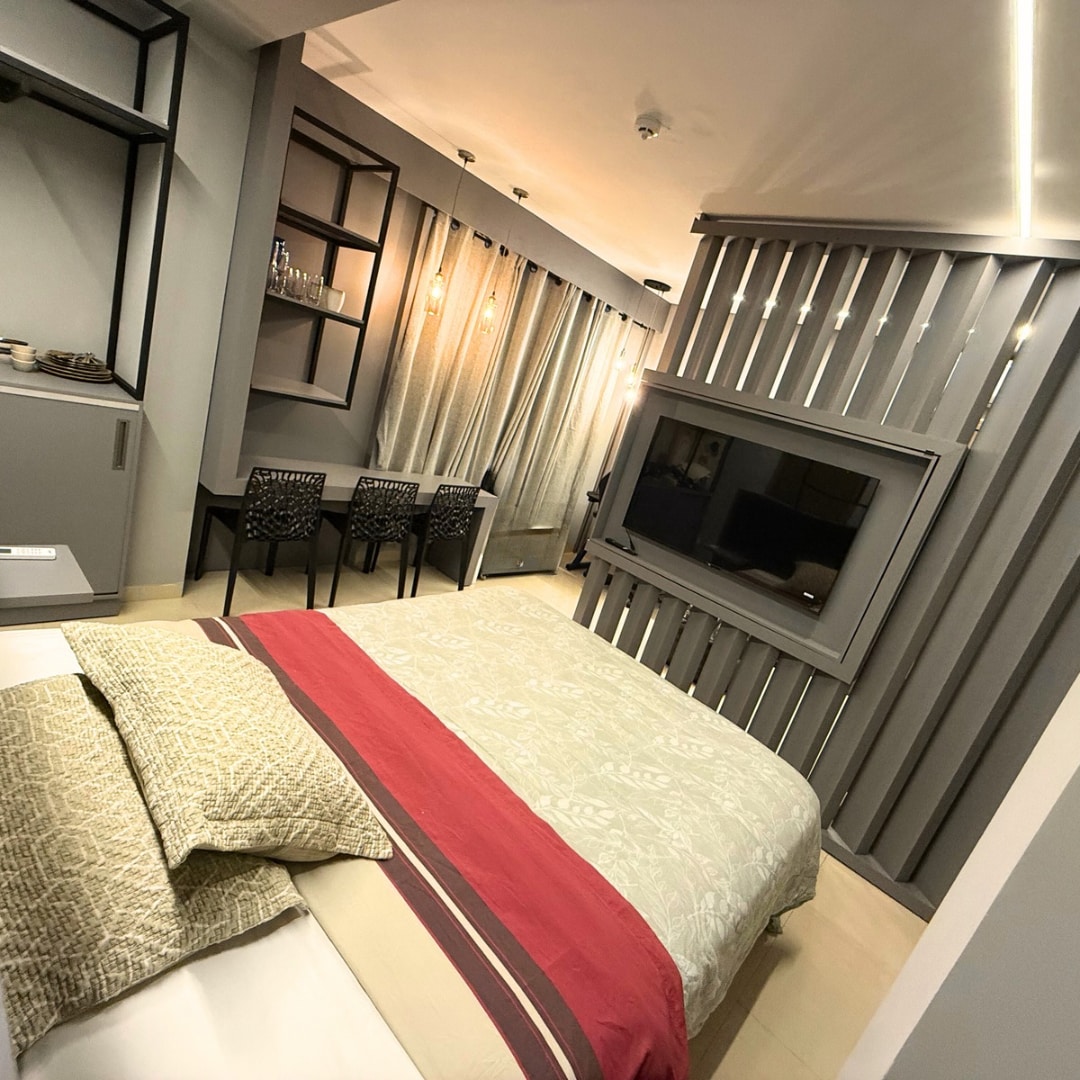 Disfrutá de una estadía única en este elegante departamento en Ciudad del Este. Cuenta con una habitación con cama matrimonial y un amplio sofá cama, ideal para hasta 4 personas. Con diseño contemporáneo y muebles a medida, ofrece confort y estilo, con parrilla y amplio balcón. El edificio es nuevo e incluye amenities como: piscina infinita en altura, coworking, gym, salón para niños, lavandería, hall, salones y seguridad 24h. Ubicado en zona estratégica, ideal para trabajo o descanso.