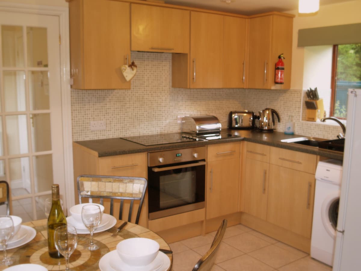 Casa de campo independiente en un pequeño pueblo tranquilo de Wye Valley en las colinas sobre Monmouth. Ubicado en 6 acres de bosques y jardines ocultos. Dormitorio grande con cómoda cama tamaño king (60") y cama individual, salón con quemador de leña, TV y WiFi. Impresionante sala de spa grande con sauna, ducha, jacuzzi y pequeño aseo. Cocina con placa de inducción, parrilla y horno de ventilador, microondas, lavadora, secadora y nevera congeladora, baño independiente con inodoro.