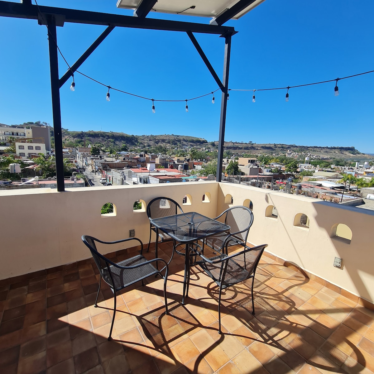 Este elegante alojamiento es ideal para viajes en grupo y familiar. Se encuentra dentro de un fraccionamiento en Tequila Jalisco y cerca de el centro histórico. Cuenta con una terraza muy cómoda y una vista a nuestro volcán de Tequila y la Sierra Madre. La casa es bastante amplia con 4 cuartos Tv y aire acondicionado en cada uno de ellos para una mayor comodidad.
