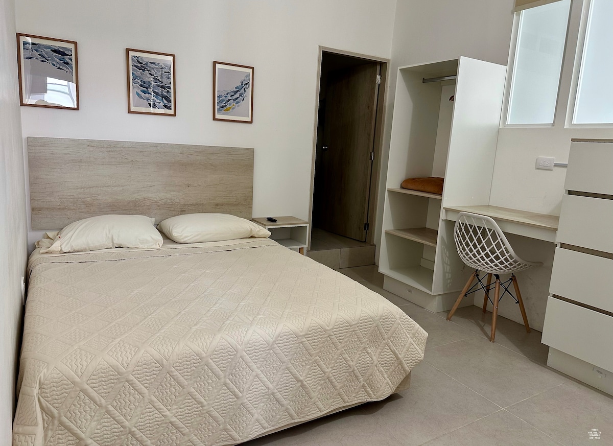 La suite esta equipada para brindar el mayor confort. Descanse en su cama con colchón memory foam mientras ve una película en la smart TV, WIFI alta velocidad. Disfrute de un buen baño en una regadera con acabados de alta calidad. Trabaje sin preocupaciones en el escritorio. Prepare comidas en la cocina totalmente equipada.
