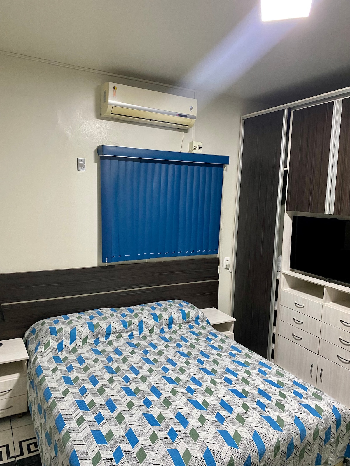 Azul, inspirador y relajante. Le invitamos a disfrutar de este estudio de 25 m² totalmente equipado, con una ubicación privilegiada en el barrio Eldorado, en una calle tranquila y segura, cerca de la Arena da Amazônia, Ponta Negra y el centro histórico y cultural de Manaus. Un espacio acogedor e íntimo, ideal para sus días de trabajo, turismo y ocio. Ofrece un ambiente tranquilo y familiar, perfecto para su estancia: - Cocina equipada - Baño - Wi-Fi - Smart TV y aire acondicionado - Cama