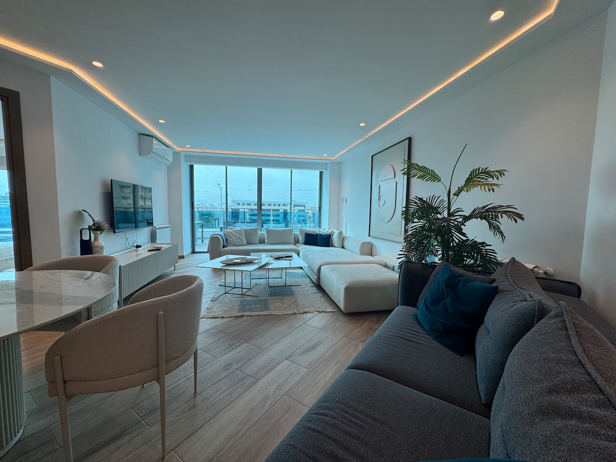 *ONE bedroom 🛌 with king size bed , work space laptop friendly and a dressing * ONE bathroom 🛁 with bath tray, candles, liquid soap, toilet roll and fresh towels * Fully equipped kitchen with breakfast essentials 🍳 , home made Tunisian 🇹🇳 spices to make delicious food 🥘 * Kitchen is opening in a spacious living room with L shape sofa where tou can enjoy watching your favorite movies 🎥 * A big balcony where you can enjoy an afternoon tea 🍵 with a view ( washing machine 🧺 is in the cornes)