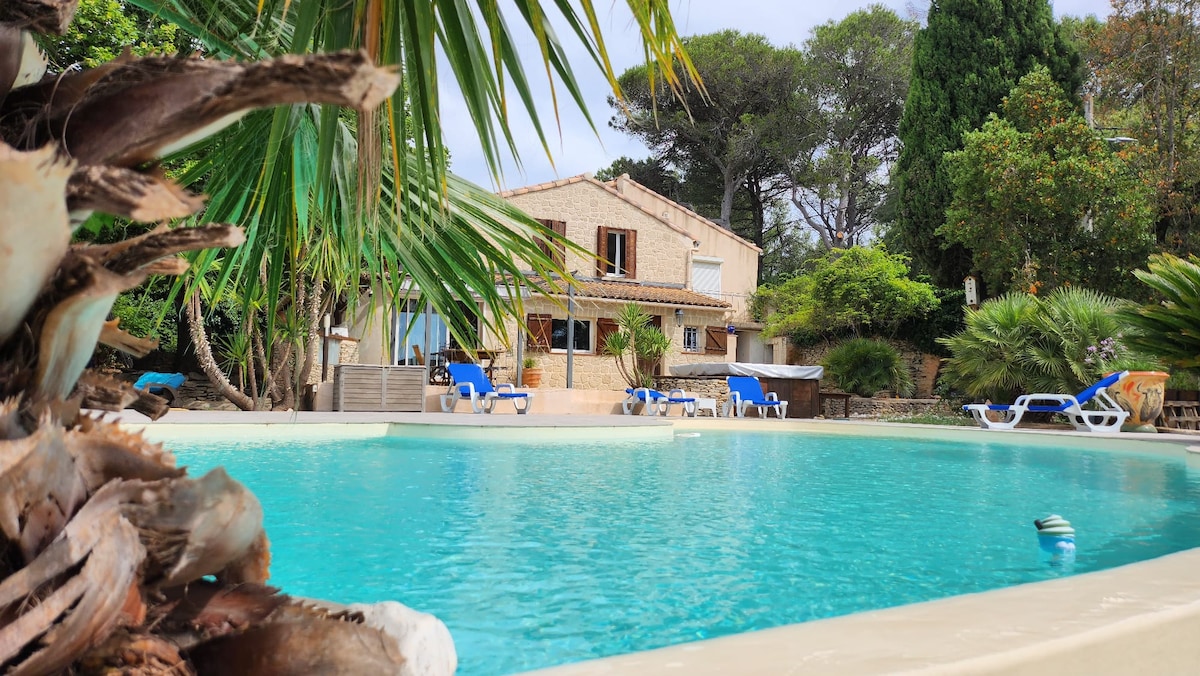 Cigales soleil piscine, ce paradis vous tente? Un grand parc arboré de 3000m2, une immense piscine cristaline, des transats pour vous reposer, hamac, terrain de boules...vous entendez les cigales? Vous sentez la chaleur du soleil? C'est les vacances! Vous apprécirez cette somptueuse villa de 260 m2 aux volumes généreux . L 'accent est mis sur: -le confort: lits douillets - la propreté impecable -les grands espaces - l'accueil Pour faire de vos vacances en famille un innoubliable moment.
