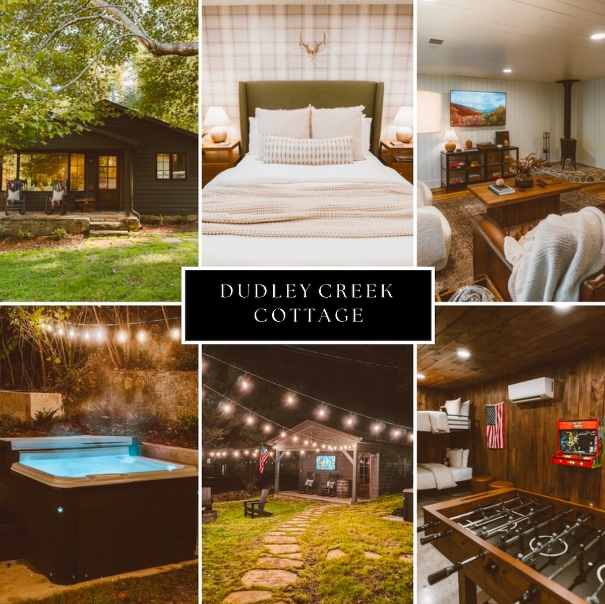 ¡Te damos la bienvenida a Dudley Creek Cottage! CARACTERÍSTICAS PRINCIPALES: Ubicación 🐻 prístina; a 1 milla de la autopista 🐻 3 dormitorios; cama tamaño king, queen, (2) camas individuales 🐻 3 baños completos de lujo 🐻 Whiskey House con (2) literas individuales adicionales 🐻 Arcade + Nintendo Switch + Futbolín Cocina 🐻 completa con electrodomésticos de acero inoxidable; Keurig, Smeg 🐻 Fogata con parrilla de carbón al aire libre 🐻 Jacuzzi y TV al aire libre Wifi de🐻 alta velocidad + (7) televisores inteligentes Estamos a solo... A 1 milla de la carretera principal A 2 millas del GSMNP A 2 millas de Anakeesta A 11 millas de Dollywood. A 8,5 millas de The Island.