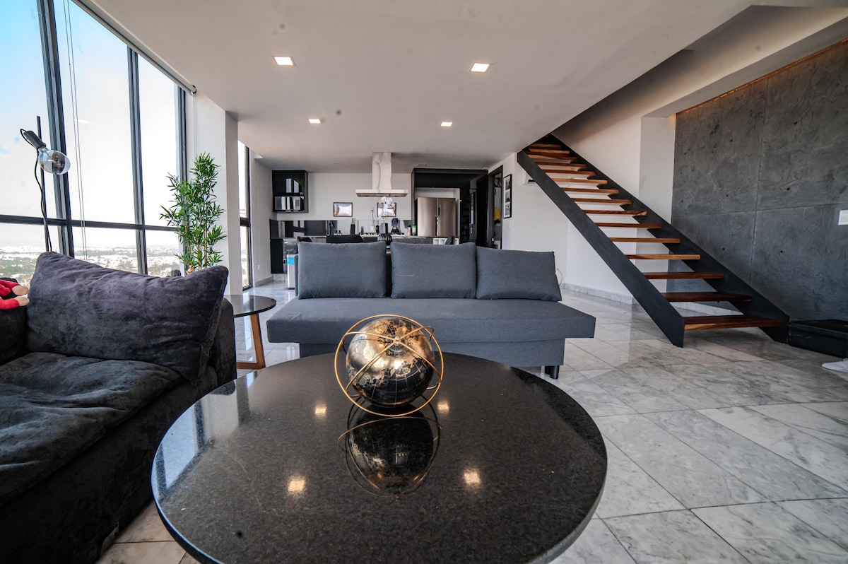 Unique loft in the best part of the city. All the comfort you need. Stunning view with private terrace. ————————————————— Loft único en el barrio más agradable de la ciudad. Tendrás a tu disposición un hermoso lugar con toda la comodidad, tranquilidad y privacidad para disfrutar de tu estancia. Desde la terraza privada, podrás disfrutar de la vista sobre toda Guadalajara.