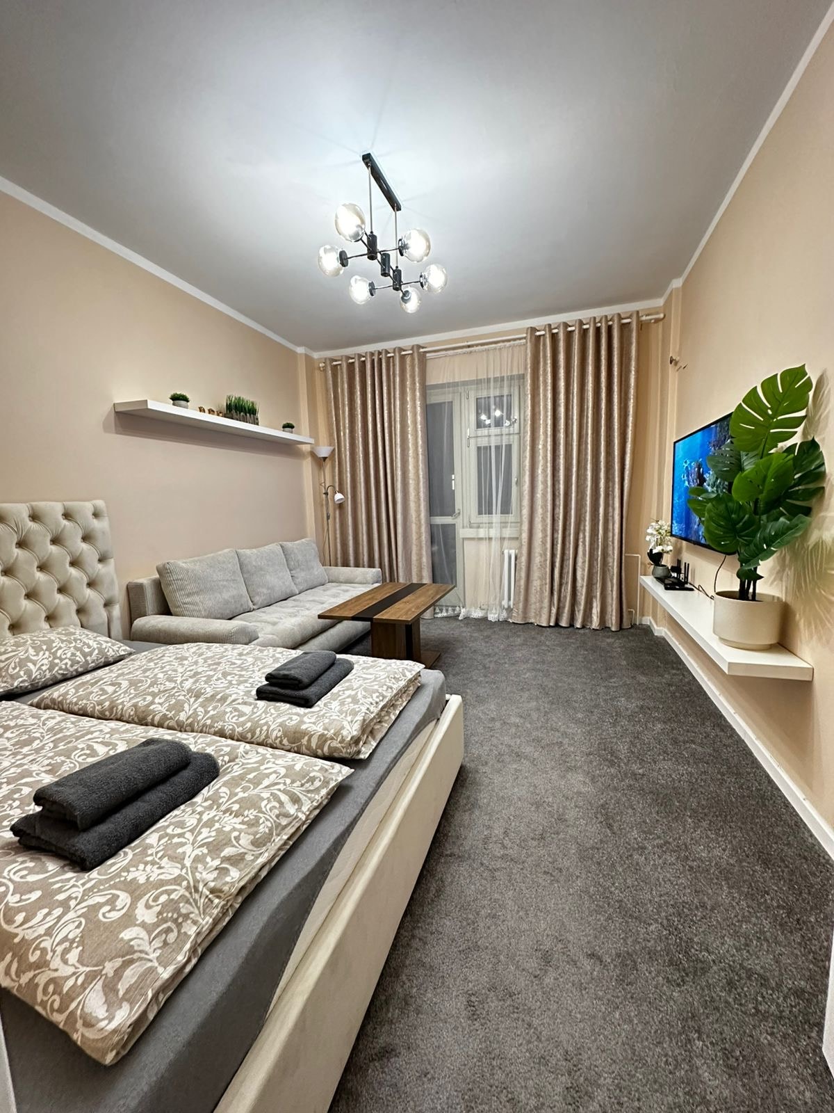 Pequeño apartamento moderno y acogedor con balcón y proyector con Netflix. El apartamento está situado en una zona tranquila rodeada de hermosa naturaleza. El apartamento no está en el centro, el trayecto al centro dura unos 30 minutos, pero el transporte es muy accesible (autobús, tren, tranvía). Gracias a ello, los alrededores del apartamento son completamente tranquilos e ideales para pasear por la naturaleza, hay varios lugares naturales hermosos al alcance del apartamento. El apartamento tiene una plaza de aparcamiento privado gratuito.