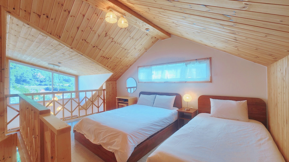 [20%할인+조식] 산방산 복층 침대2개 개별냉난방 "제주542펜션" [104호]