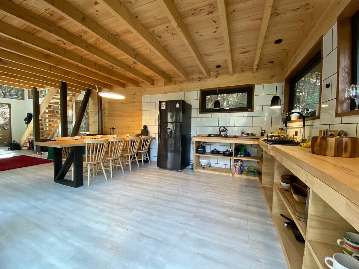 Casa minimalista 150 M2 de dos pisos, arquitectura única, esta al medio de un bosque nativo, vista totalmente despejada sobre el valle, amplia Tinaja, living comedor con cocina abierta, hall de acceso de triple altura, dos amplios dormitorios principales, camas super King, calefacción C/Estufa a pellet, terrazas en dos niveles, parrilla, Internet Starlink, para subir es necesario 4x4, si no tienen su auto queda guardado abajo y nosotros los subimos *Tinaja se cobra aparte. *Tenemos masajes !