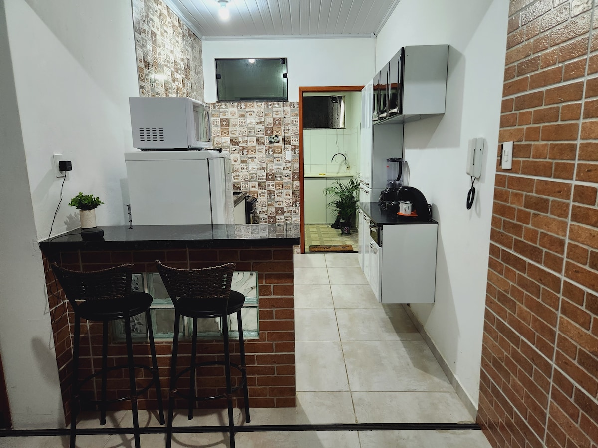 Nuestra propiedad consta de suites que han sido diseñadas para dar la bienvenida a los huéspedes que desean una gran comodidad a un precio justo. Son suites con baño, zona de servicio y balcón. Una gran suite para 2-3 personas. Muy bien planificado, muy limpio y decorado. Lo que te hará sentir súper cómodo y con ganas de pasar más días. Para proteger tus pagos, usa siempre Airbnb a la hora de transferir dinero y comunicarte con los anfitriones. Prohibido cocinar con el aire acondicionado encendido – Multa de R$ 500