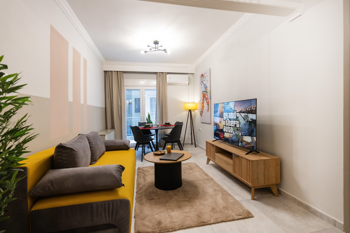 ●Este espacioso y moderno apartamento es ideal para alojar hasta 6 huéspedes. ●Totalmente renovado con una estética única, consta de una cocina totalmente equipada, 2 dormitorios, un bonito baño y balcón. ●La propiedad está perfectamente ubicada entre los principales sitios culturales e históricos; a 5 minutos de la plaza Aristóteles y a 3 minutos de la plaza de Santa Sofía. ●Te alojarás en un barrio seguro, con muchas tiendas, supermercados, restaurantes y cafeterías alrededor, así como un mercado abierto las 24 horas.