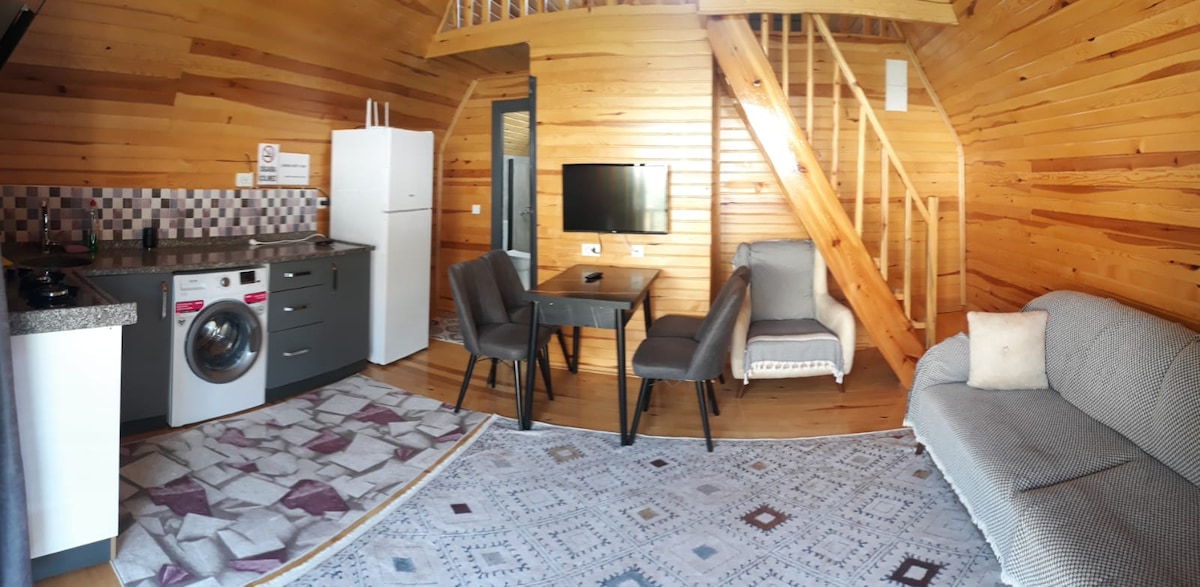disfrute de las vacaciones en villas de madera. está en una ubicación maravillosa en la intersección del verde y azul de las villas. El hecho de que las villas estén hechas de madera dará a nuestros huéspedes paz y salud. No hay productos químicos que sean dañinos para la salud humana en su construcción. Hay 5 casas de madera en el mismo lugar desde la misma casa. A 2500 metros del centro de la ciudad. A 8 km del puerto. A 300 metros del aeropuerto. Todas las habitaciones están hechas con vistas al mar.