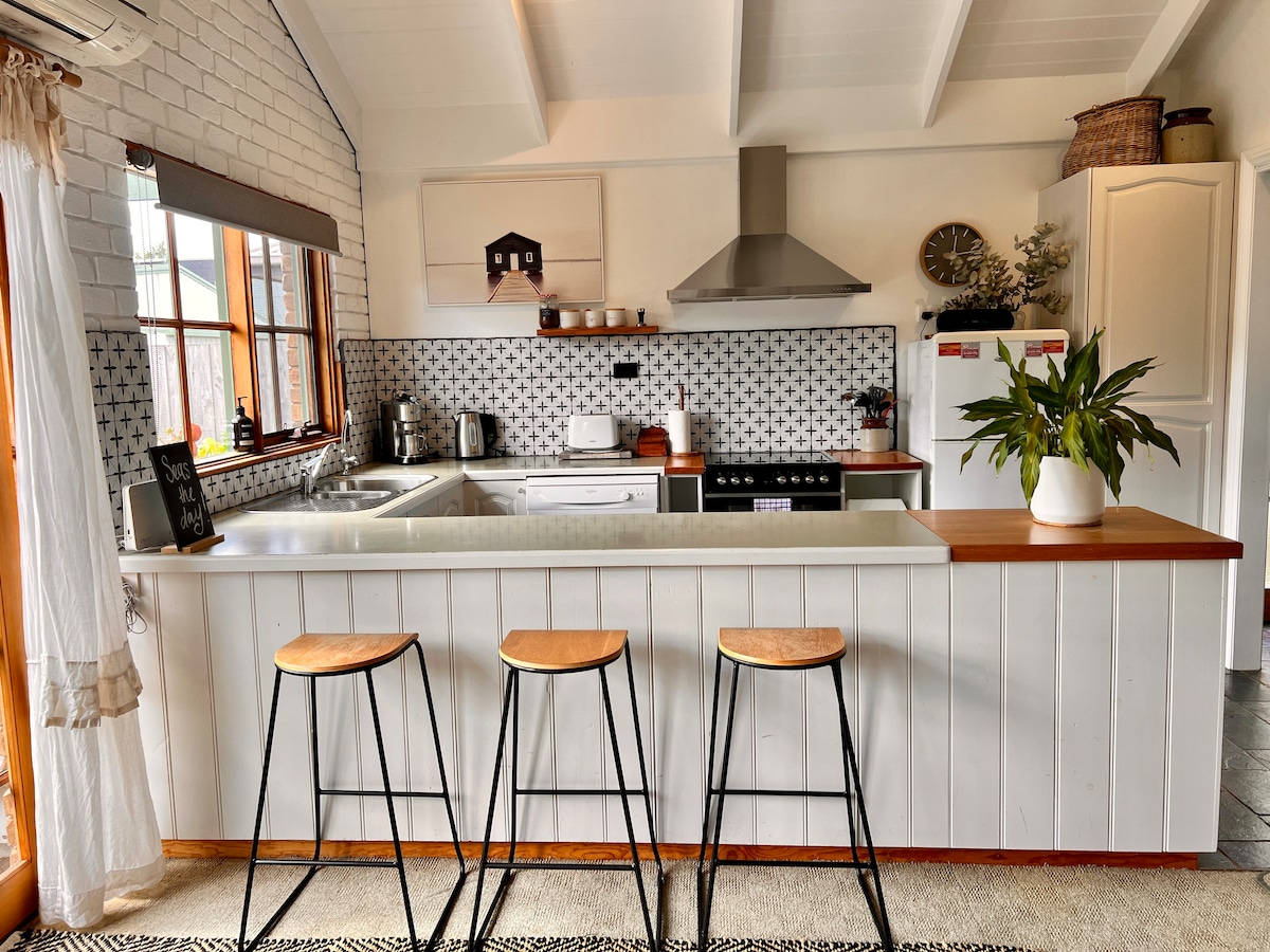 Salty Cottage; a private, beautifully appointed haven only a hop, skip and jump to the beach and cafes of Apollo Bay. On arrival you will immediately feel the relaxed holiday vibe of this delightful cottage. Modern with old world charm discover an array of thoughtful touches such as the wood fire, full kitchen & divine king bed will have you wishing you could stay forever! The spacious lounge overlooks the private fenced courtyard with sunlight streaming in & bonus glimpses of the green hills