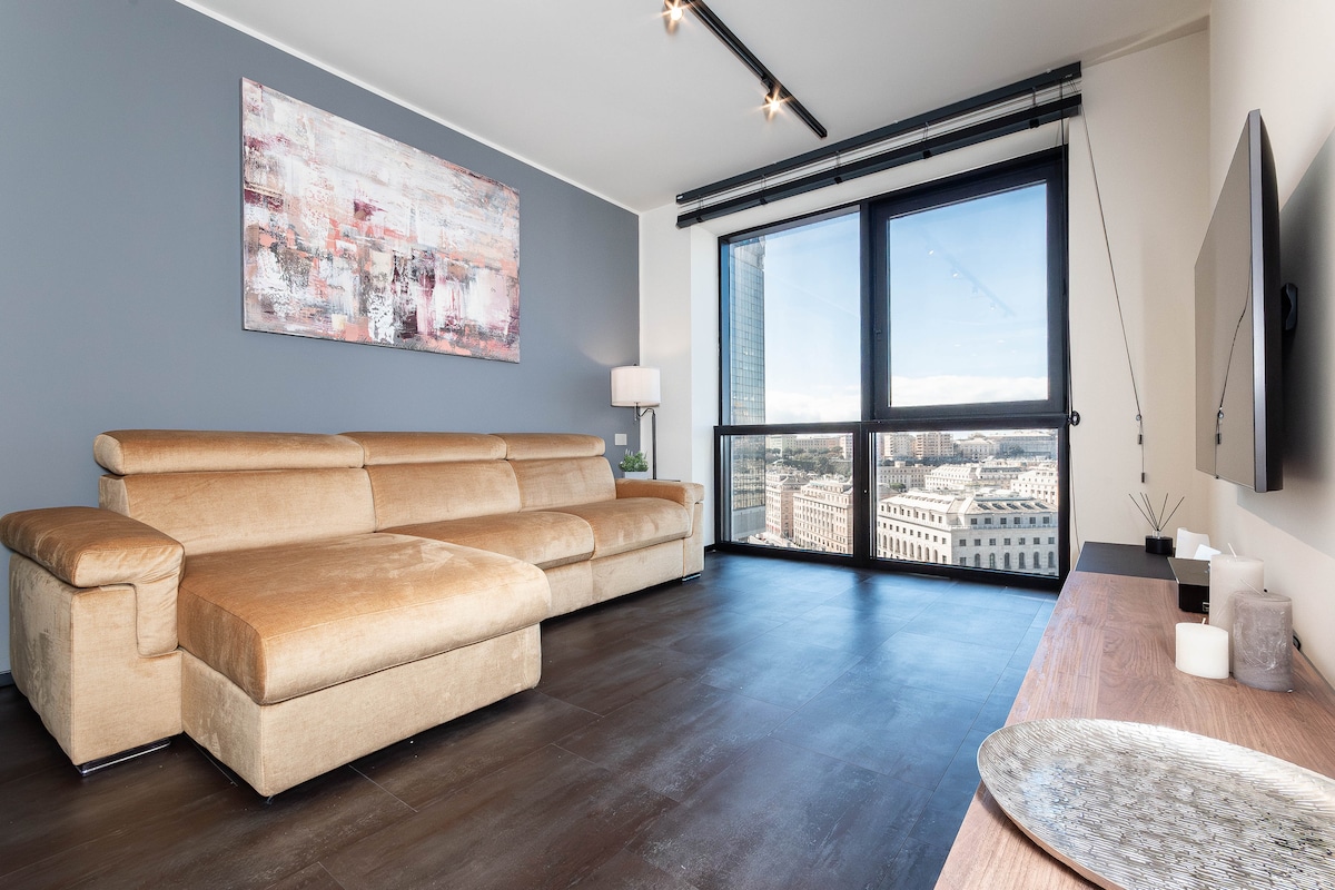 Piso de 95 m² de 2 dormitorios con vistas al mar y a la ciudad en el piso 17 (ascensor) detrás de la plaza principal Piazza De Ferrari y a 11 minutos a pie del acuario. Salón con 2 sofás cama y cocina con fogones, microondas, lavavajillas y lavadora. 2 dormitorios con cama tamaño queen y TV grande con Netflix. Baño con ducha - Wifi rápido gratuito - Aparcamiento subterráneo seguro al lado 22 euros/día. Supermercado abajo. CITRA: 010025-LT-1771