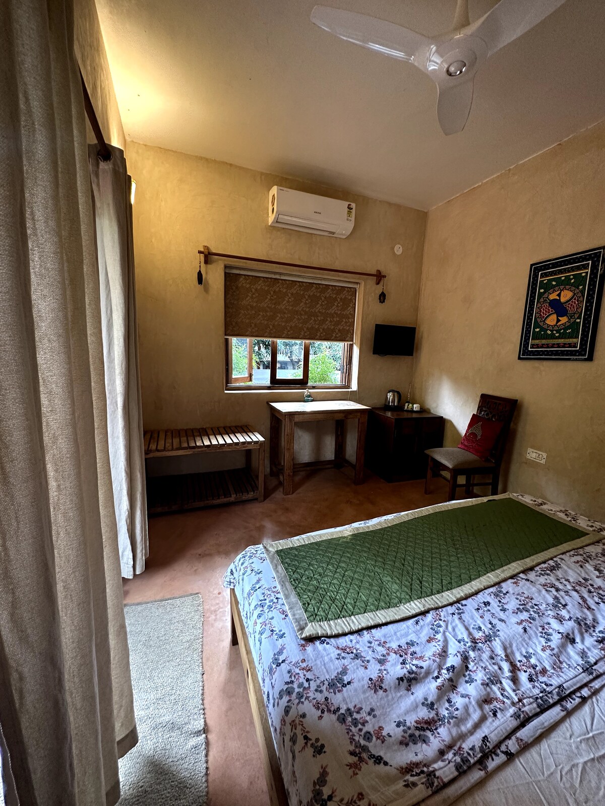 Bienvenido a Ancessaao's 🏡🌴, tu auténtica escapada goana en Assagao, a solo 10 minutos de Vagator y Anjuna Diseñada para una vida lenta y escapadas íntimas, esta cabaña combina encanto con comodidades modernas, perfecta para parejas o viajeros solos que buscan relajación y privacidad. Características principales Aire acondicionado y wifi ❄️| TV y mininevera 🍺| Terraza privada e interiores iluminados por el sol 🛏️| Cocina americana (no cocina)| Bolsitas de té, café y leche ☕| Sistema de energía de respaldo ⚡| Lavandería disponible| Propiedad cerrada 🚪| Aparcamiento interior 🅿️