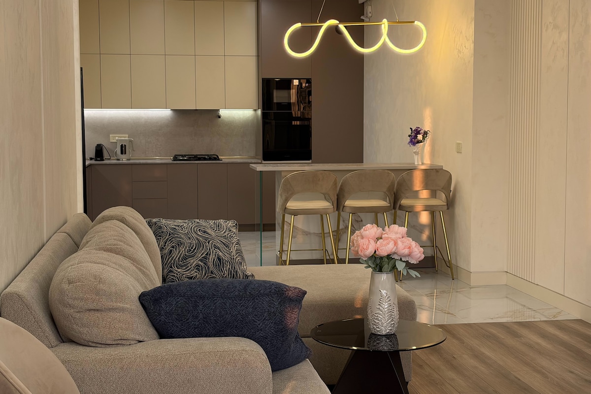 Rodéate de arte, luz solar y comodidad y, por supuesto, del lujo de la mejor ubicación durante tu estancia en Ereván. Te alojarás en el edificio que fue construido especialmente para el Comité Central del Partido Comunista de la Unión Soviética en Armenia, justo delante de la hermosa Casa del Compositor y la Casa del Pintor. ¡Date un paseo por la ciudad para descubrir los barrios y lugares culturales, disfruta de los mejores restaurantes y pubs y camina hasta tu tranquilo hogar en Ereván!