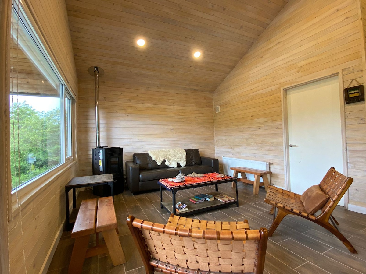 La cabaña tiene un ambiente natural y un toque rústico dentro de un entorno increíble del bosque nativo y los árboles a tu alrededor. La cabaña ha sido construida con madera nativa y sostenible. Está bien equipada. Es un espacio muy bonito y acogedor con una gran terraza con asientos al aire libre. Hay un bonito río con acceso dentro de la propiedad con una mesa de pícnic junto a él para disfrutar escuchando el río. Gran jardín verde soleado, mesa de picnic para disfrutar de las vistas a las montañas, un pozo de fuego y un par de hamacas.